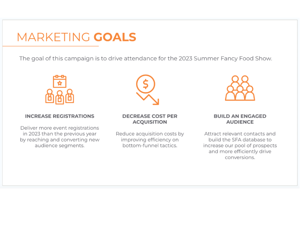 Outlined key marketing priorities, including content strategy, digital engagement, sponsorship visibility, and attendee experience enhancements.